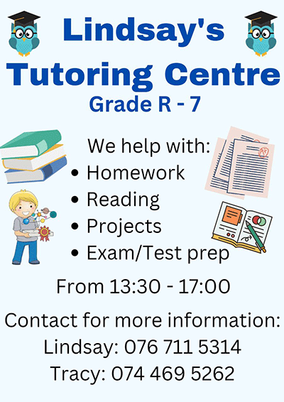 Lahra Dunn: 082 6043 948Lerato Dlamini: 082 678 8431